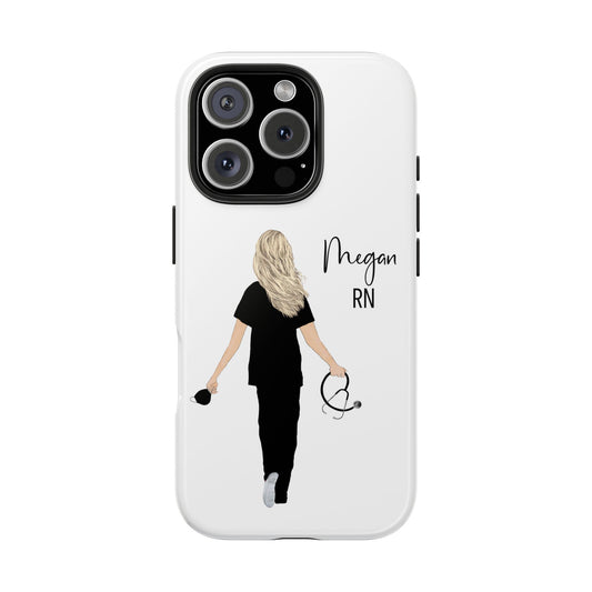 Customized Nurse Protective Phone Case Iphone Samsung Most Models, Customize hair style and Color, Name or Text